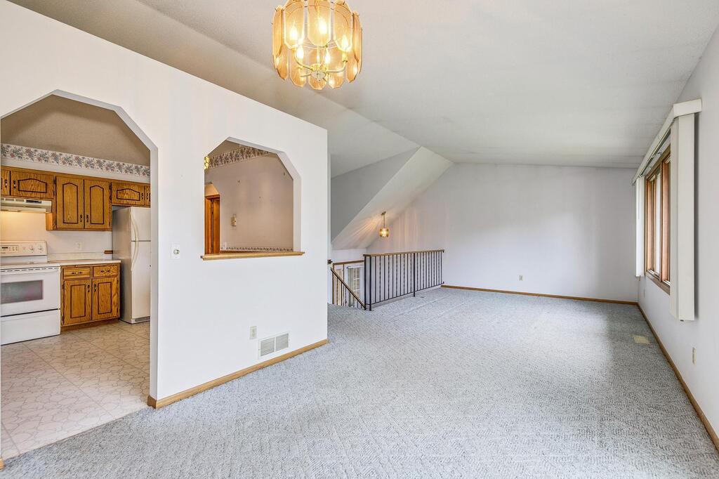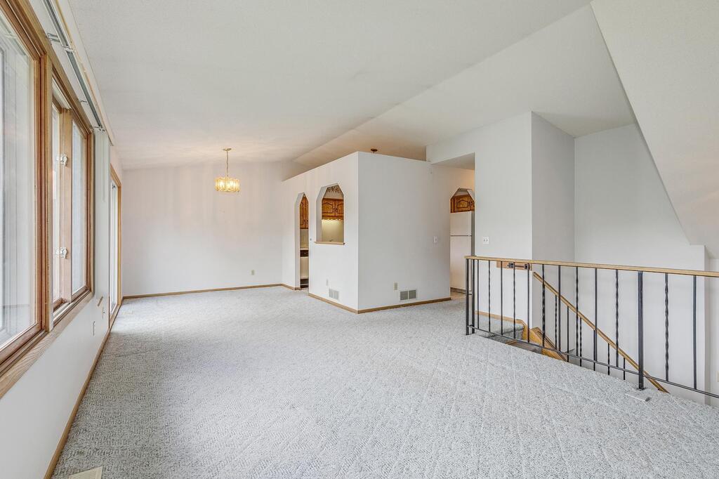 The upper level features a spacious living room with large windows that fill the home with natural light, as well as a formal dining area. The kitchen offers ample space, including room for a breakfast table or casual dining nook.
